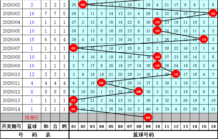 蓝球分析:上期开出蓝球号码01,为重号,温冷蓝球近期开出比例较高,本期防冷码蓝球继续解冻,参考蓝球号码09。