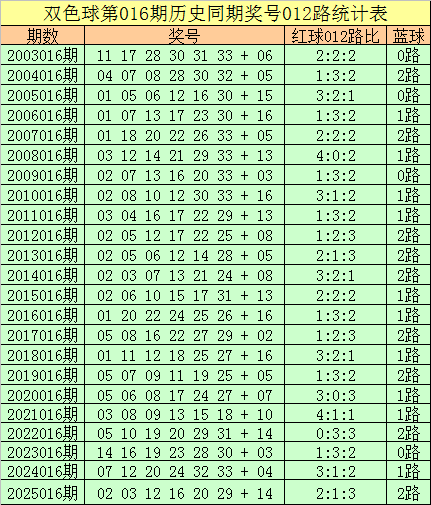 福彩双色球第2026016期历史同期王守礼012路奖号遗漏分析: