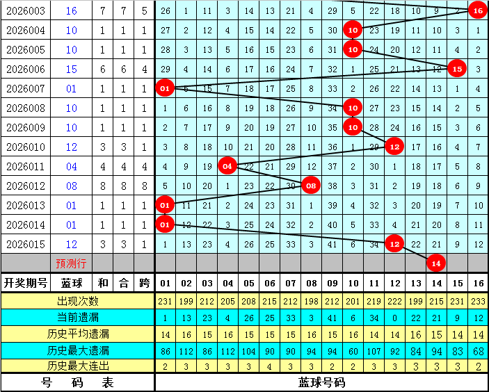 1路红球号码:上期开出了5个,表现相对活跃。最近5期开出16个1路红球号码:04 07 10 13 16 19 22 31,其中小 号1路红球号码表现活跃,奇数1路红球号码表现活跃。本期参考1路红球号码:01 04 07 22。