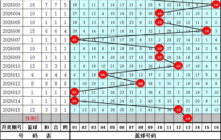 蓝球分析:最近10期蓝球号码遗漏期数分别为:4期、29期、2期、0期、24期、10期、12期、5期、0期、4期,上期开出蓝球号码12,本期注意冷码蓝球解冻,关注蓝球号码13。