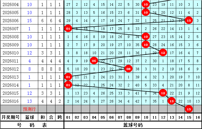 蓝球分析:上期蓝球奖号开出13,为大号,上周日蓝球奖号开出01,最近十周日蓝球号码大小比为4:6,小 号蓝球表现活跃,本周日适当关注大号蓝球回补,看好蓝球号码09、12、14、15、16。