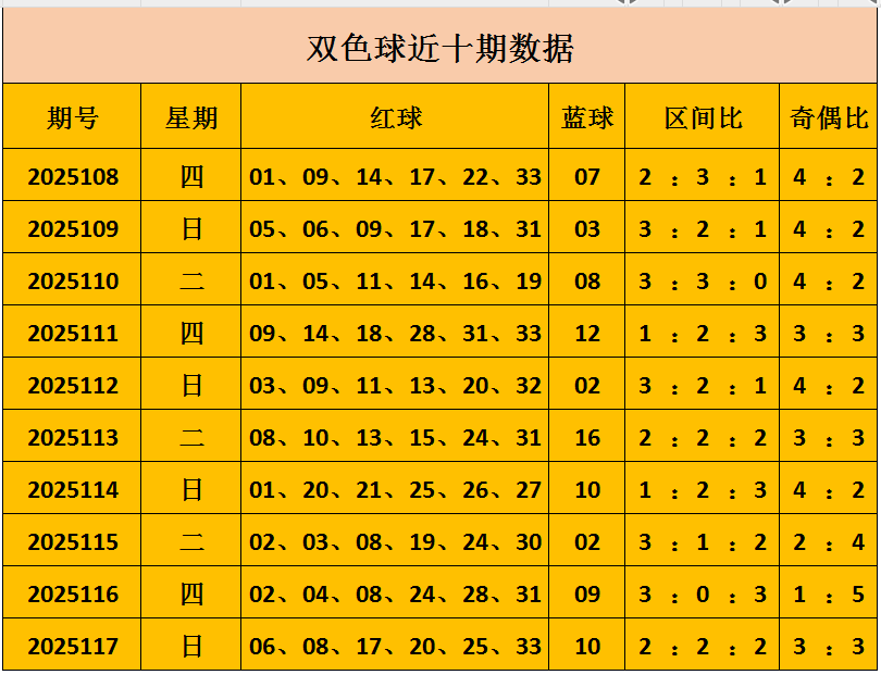 双色球上期开出奖号:06 08 17 20 25 33+10,区间比2:2:2,奇偶3:3。
