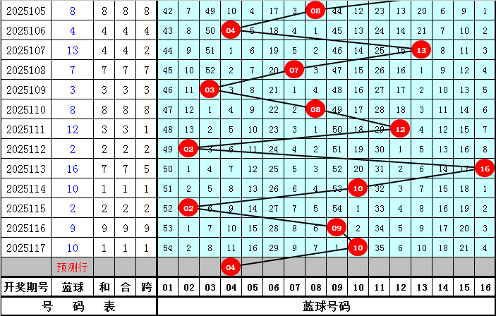 蓝球分析:上期蓝球为大号10,最近10期大小蓝球号码分别出现5次,走势相当,本期看好小 号蓝球,参考蓝球04。