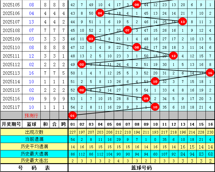 蓝球走势分析:上周二第25115期蓝球开出号码02,最近十周星期二蓝球号码大小比为4:6,奇偶比为3:7,012路比为1:4:5。本期蓝球建议侧重奇数号码,参考蓝球01、03。
