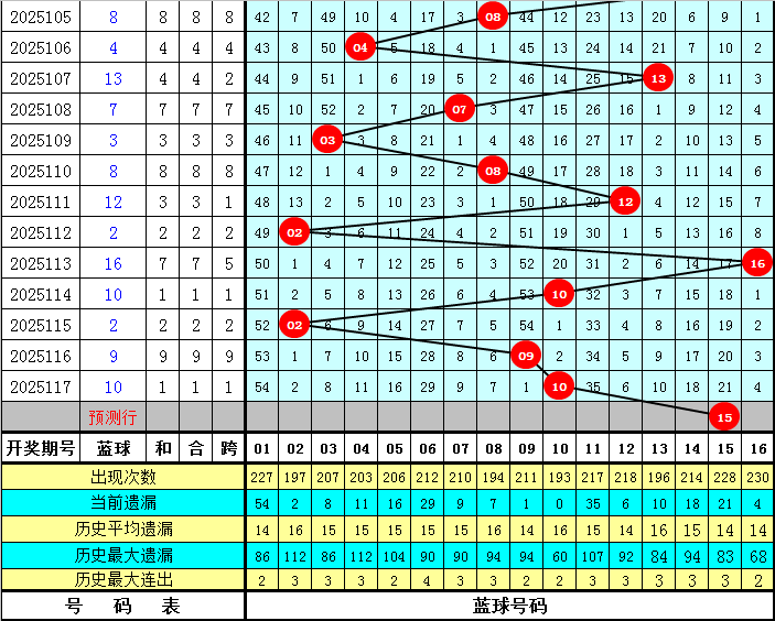 蓝球分析:在第118期历史同期开奖中,蓝球号码奇偶比为11:10,最近5年同期奇偶走势为:奇、奇、偶、偶、偶,今年同期看好开出奇数蓝球,参考号码15。