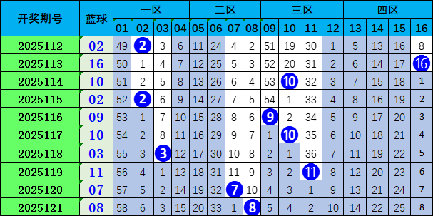 红二区(12-22):上期没有开出奖号,最近10期该区开出11个号码,整体表现较沉闷,本期预计该区出现1枚号码 20 。