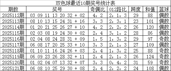 双色球第2025121期开奖,红球:06、08、10、25、29、30;蓝球:08。其中红球和值为108,跨度为24,奇偶比为2:4,012路比为2:2:2,蓝球为温码、偶数。