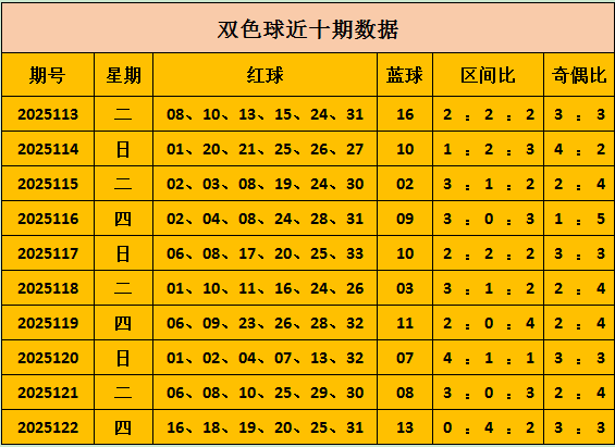 双色球上期开出奖号:16 18 19 20 25 31+13,区间比0:4:2,奇偶3:3。