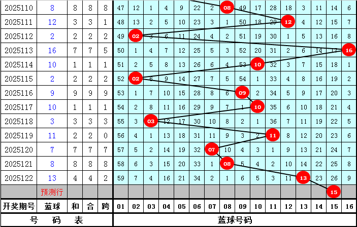 蓝球号码分析:最近30期蓝球号码质合比为12:18,最近10期蓝球质合比为5:5,最近5期蓝球分别为:03、11、07、08、13,本期蓝球关注合数号码,参考蓝球号码15。