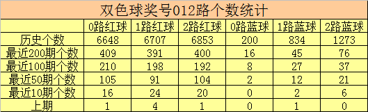 双色球第2025123期红球号码012路分析
