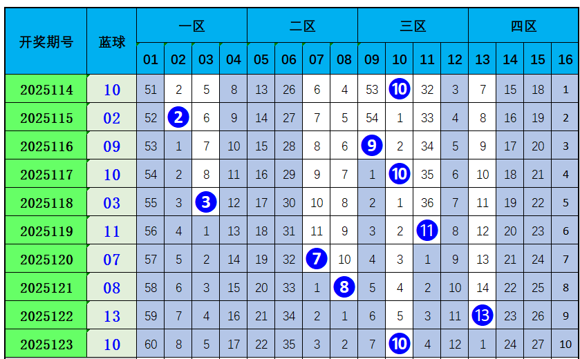 上期开出偶数蓝球10,近10期开出奇数号码5次,开出偶数号码5次,奇偶比5:5,近期奇偶数奖号出号均衡。本期预计开出奇数号码:05。