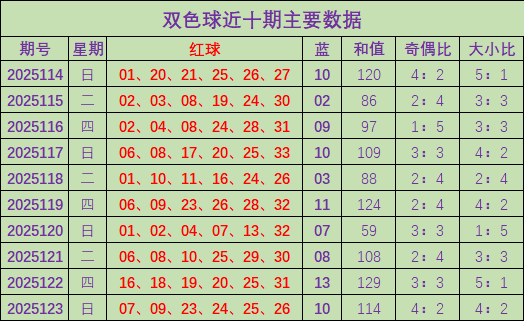 双色球上期开出奖号07 09 23 24 25 26+10,奇偶比4:2,大小比4:2,和值114