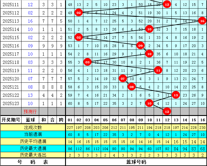 和值大小分析:最近10期和值大小比为6:4,其中大号和值出现次数较多,目前连续开出了3期,短期内不会转冷,本期预计大号和值继续热出。