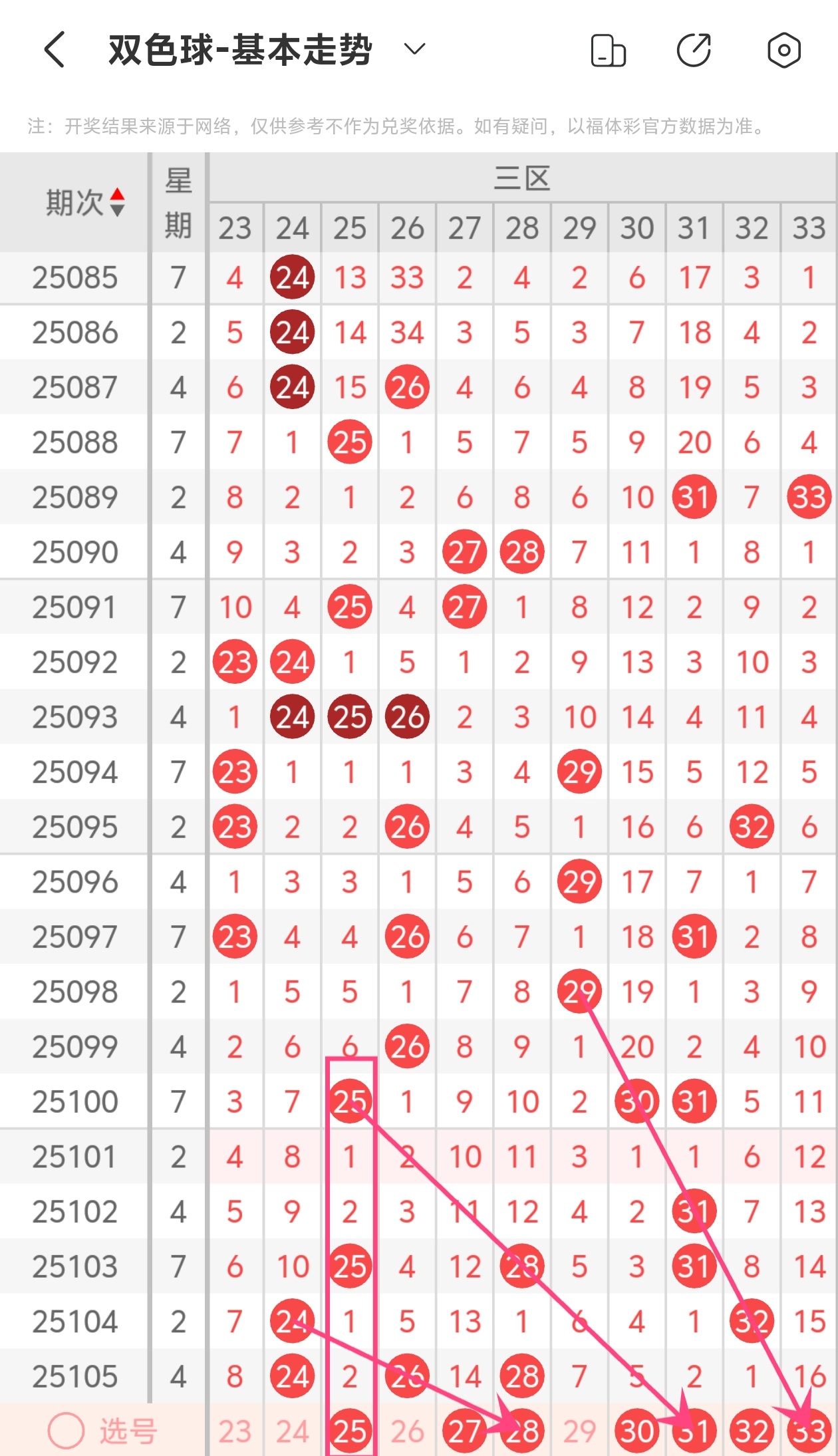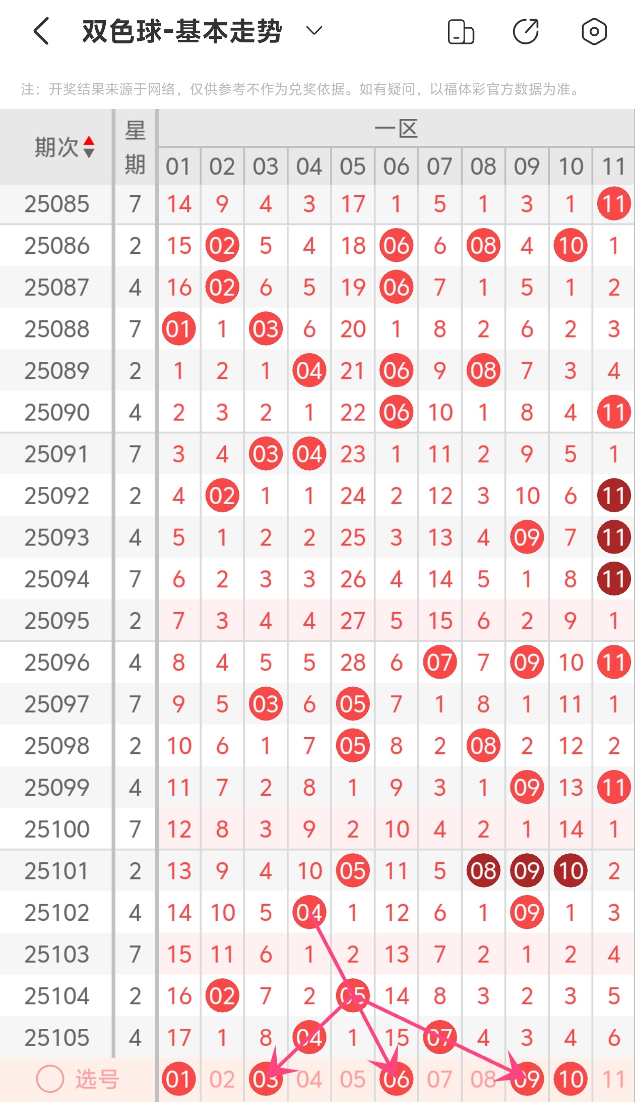 下面是我对2025106期福彩双色球的分析和预判,希望通过我的分析能让大家今晚大红!福彩双色球上期开奖号码如下图: