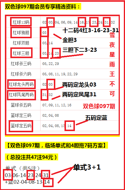 特别提醒:开通周/月会员,可以阅读本人更详尽、更深入的所有会员专享文章及投注方案(双色球、大乐透、排列三、排列五、福彩3D)。 单期会员只能阅看当期单彩种的【会员专享】文章及投注推荐。