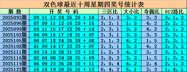 三区间分布分析:上周四第25122期奖号为:16、18、19、20、25、31+13,区间比为0:4:2。本期热区关注红三区,看好其余两个区间红球走冷,区间比参考1:1:4。