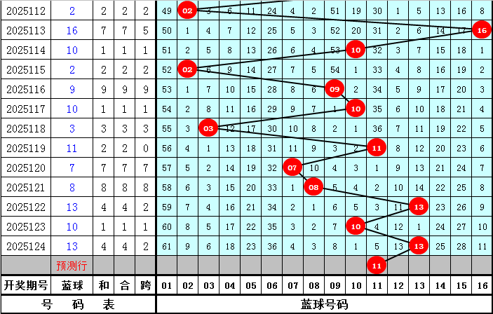 蓝球推荐:最近10期蓝球开出尾数:3出现3次,0出现2次,1、2、7、8、9出现1次,4、5、6出现0次,本期重点关注奇数蓝球出现,参考蓝球号码11。
