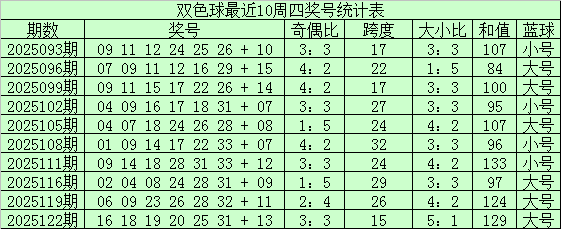 奇偶走势分析:上期开出奇偶比为4:2,上周四红球奇偶比3:3,最近十周四偶数红球略占优势,本期预计偶数红球再次走热,参考奇偶比2:4。