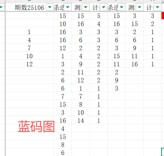 首先可以看一下蓝码的对比结果通过两个图表数据的对比,我们把蓝码的范围确定为1 4 7 10 12