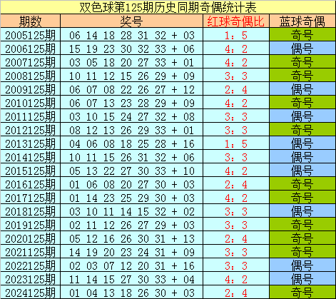 蓝球分析:在第125期历史同期开奖中,蓝球号码奇偶比为11:9,最近5年同期奇偶走势为:奇、奇、偶、偶、奇,今年同期预计再出奇数号码,参考蓝球03。