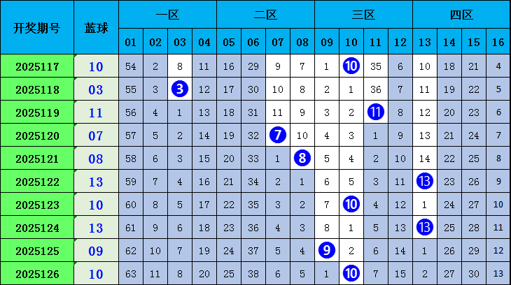 蓝球:上期蓝球开出大偶数10,近10期蓝球,其中奇数蓝球出号6个,偶数出4个,近5期开出3期奇数,本期看好偶数蓝球热出,参考蓝球06