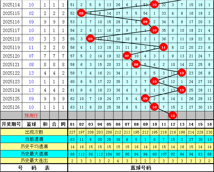 上期开奖:第2025126期双色球开奖:02、12、13、16、19、25+10,红球012路比1:4:1,蓝球为1路奖号。