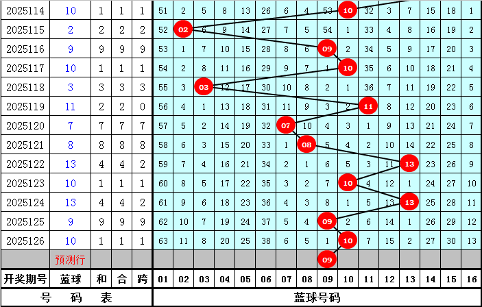 蓝球推荐:蓝球上期奖号为10,开出偶数蓝球,本期注意蓝球转向,看好奇数蓝球号码出现,参考五码蓝球05、09、11、14、15。