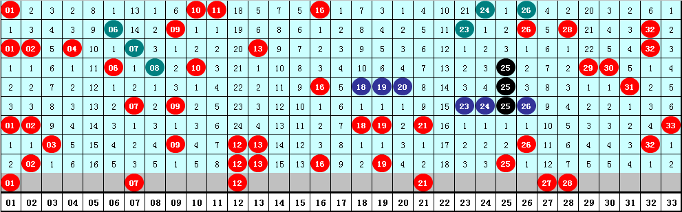 3、连码分析:最近十期连码开出比例为80%,连码开出比例较高,本期预计连码再次出现,参考号码27 28。