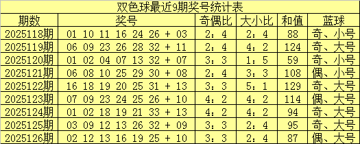 奇偶比:上期红球奇偶比为3:3,其中红球奇偶号码走势相当,最近9期红球奇偶比为26:28,奇偶红球走势相当,本期预计奇偶红球继续平衡出现,关注奇偶比3:3。
