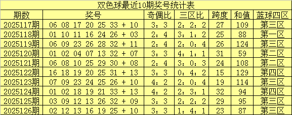 南华天第2025127期双色球区间号码个数统计分析:(红球:01-11为一区,12-22为二区,23-33为三区;蓝球:01-04为一区,05-08为二区,09-12为三区,13-16为四区)