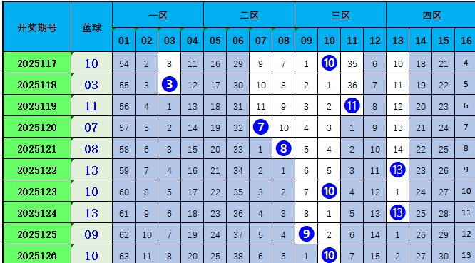 上期蓝球中奖号码为10,近10期蓝球综合奇偶比6:4,奇数走势占优,本期推荐奇数:03