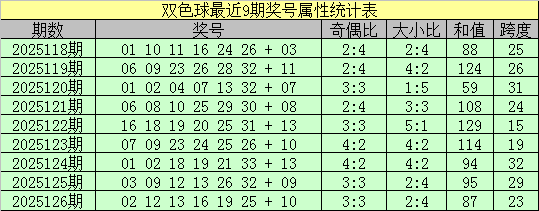 双色球上期第2025126期奖号为02 12 13 16 19 25 + 10,红球号码奇偶比为3:3,大小比为2:4,和值为87,跨度:23。