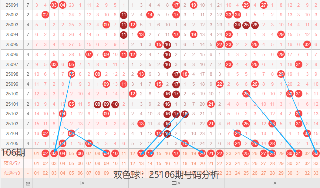 先介绍下上期开奖号码的基本情况,红球奇偶比:1:5,区间比:2:1:3,012路比:2:3:1,通过上期号码简单介绍,分享下25106期号码球个人认为的出号可能,供大家参考!