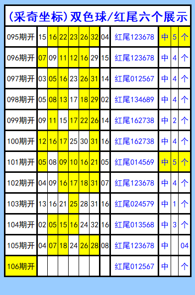 双色球第106期图文(采奇坐标),红尾六个展示