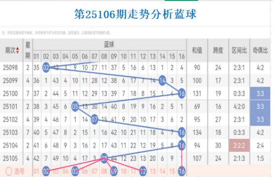 - 16 为大号蓝球,也常常出现在交替的模式中,值得关注。