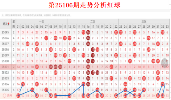 从三区分布来看,近期三区的分布较为均衡,不过二区略显强势。我们可以考虑采用 2:2:2 的比例,或者适当偏重二区,使用 1:3:2 的方式来选择号码。