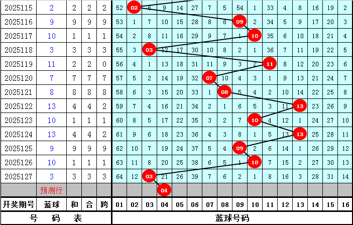 在历史同期第128期开奖中:蓝球号码012路比为4:7:9,本期蓝球参考1路号码,独蓝看好04。