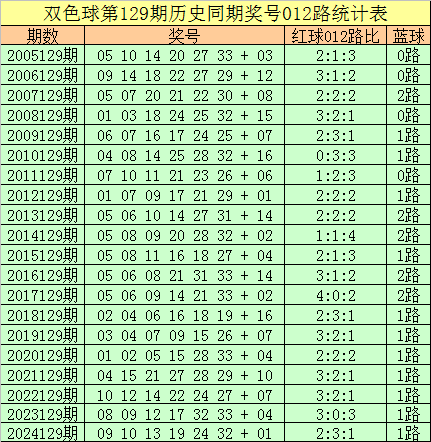 福彩双色球第2025129期历史同期王守礼012路奖号遗漏分析: