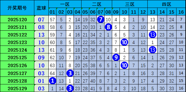 上期蓝球开出奇数号码03。近期奇偶球比值7:3,奇数球走势活跃,本期看好奇数球热出,推荐号码11。