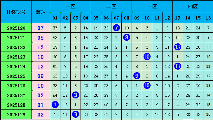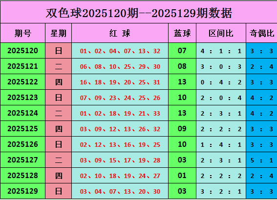 双色球第2025129期开奖:本期开奖号:03 04 07 13 20 30。蓝球:03,奇偶比为3:3。