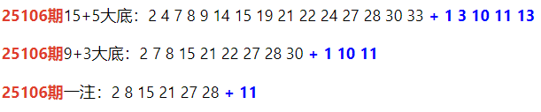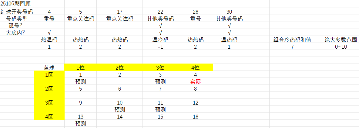 公式:【重号0~2个+重点关注码1~5个+防守码(备选)0~4个+其他类号码0~3个】,孤号2~4个,也是经过了两百多期的验证,通用率95%以上,可以和上面的组合冷温热码范围配合着选,如果有号码属于两种类型,那两个类型号码都计数一次
