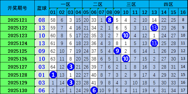 上期蓝球开出偶数号码06。近期奇偶球比值6:4,奇数球走势活跃,本期看好奇数球热出,推荐号码03。