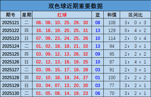 双色球上期开出奖号:01 05 08 14 19 23+06,和值70,区间比3:2:1
