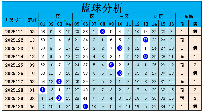 山哥双色球蓝球综合分析: