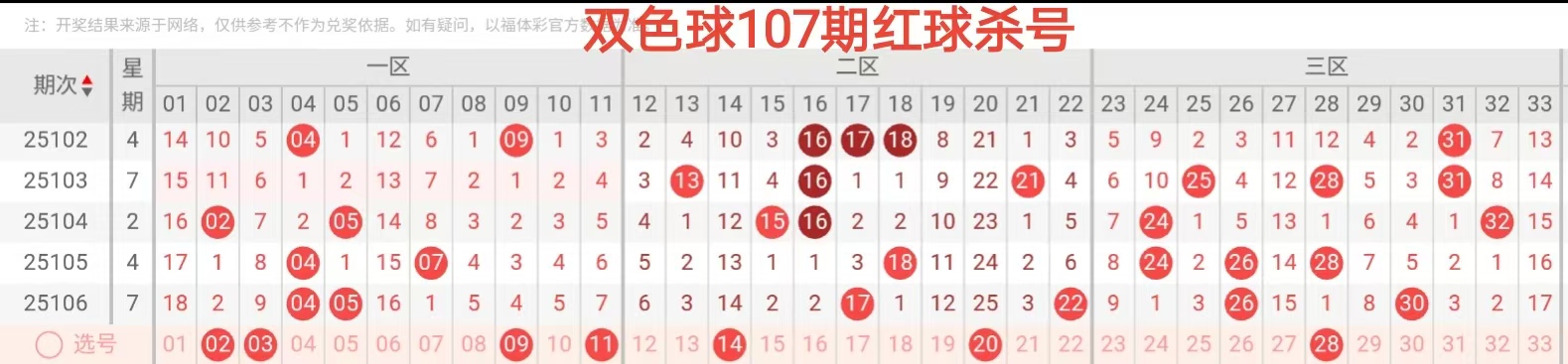 综合上期双色球开奖信息,结合全年开奖趋势,分析25107期双色球条件结构如下: