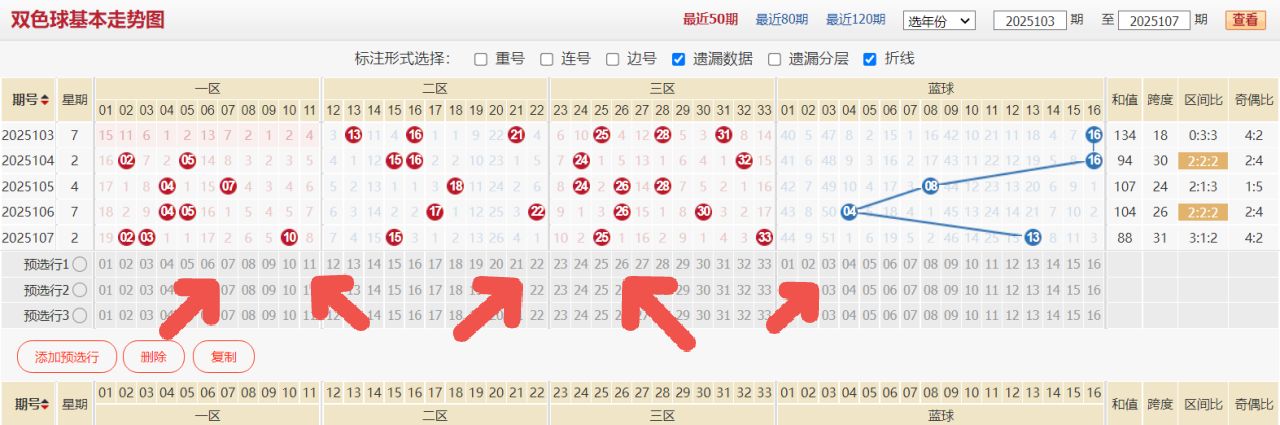 上期双色球的开奖号码为:02 03 10 15 25 33+13,和值为88,跨度为31,区间比例为3:1:2,奇数偶数比例为4:2,012路比例为2:3:1。上期号码的整体幅度并不是非常困难。只是在一区号码这里继续开出了一个首部连号,这样的一个角度其实并没有带来特别大的困扰。只不过在一区的热度这一块确实得到了一定的提升。本期号码关注二区左右两侧的组合方向。 同时对于三区的奇偶组合也要重点关注。这是本期号码的初始基本思路。