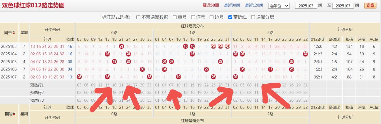 近期双色球的发挥相对来说要比大乐透更加出色。25105期,我们拿下了6+1的底码准度,25106期,我们拿下了5+0的定位准度,上期号码因为红球整体比较难,我们仍旧拿下了两码定蓝。本期我们继续出发,期待能够为大家取得更好的成绩。对本期双色球有所需要参考的朋友们不妨关注本期精选推荐,我们一起加油!