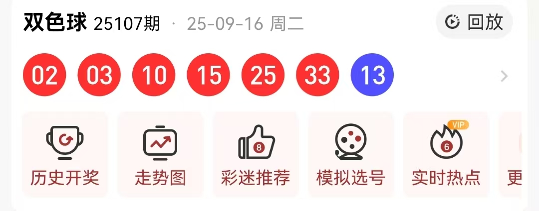 先来回顾一下第2025107期的双色球开奖结果:02 03 10 15 25 33+13,以下是对本期数据的详细分析:
