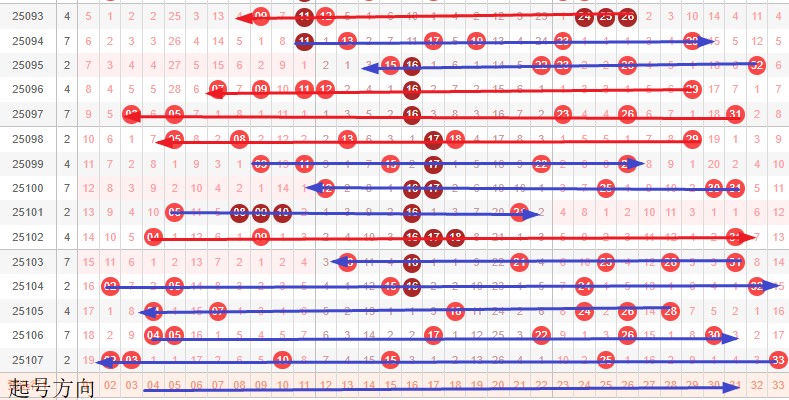 如图所示:首尾制约平衡组范围依次为:缩拉缩,拉拉? 本期形态范围优先选择红色压缩首尾。由于上期号码已经进入新走势第4期,目前处在2连,利用平衡起号开出压缩和左推即为走势正反方向。