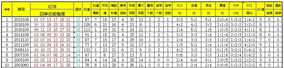 附:2003年起每年108期开奖号各类数据及9月18日同期开奖号各类数据,供大家参考!大佬和彩友们速速拿走~